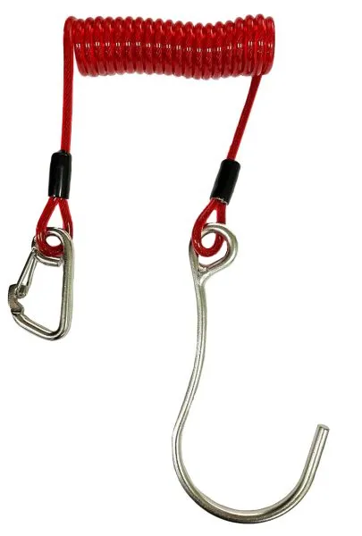 Пружинная спираль с стальными карабинами на концах. Спираль растягивается от 14 см до 150+ см. Карабин с автоматическим закрытием при заводке на линь или веревку, изготовлен из нержавеющей стали.
