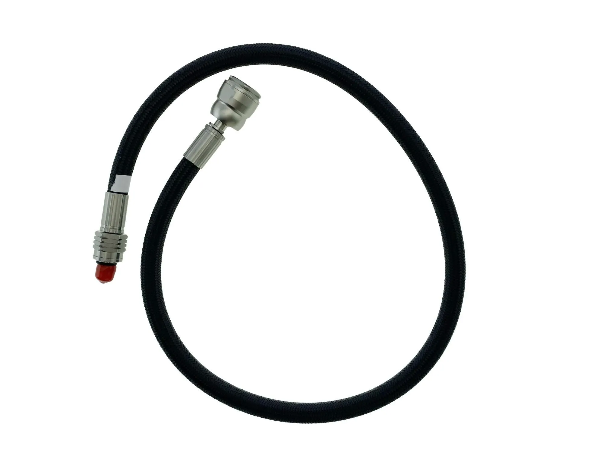 Ключевой особенностью этого шланга является штуцер из нержавеющей стали с шарнирным соединением. Эта критически важная деталь играет решающую роль в предотвращении заломов и перекручиваний шланга в месте соединения с регулятором. Шарнир обеспечивает максимальную гибкость, позволяя шлангу свободно вращаться на 360 градусов и легко адаптироваться к любому положению и движениям дайвера. Это значительно продлевает срок службы изделия, поскольку исключает избыточное напряжение и износ материала, а также существенно повышает комфорт использования, позволяя регулятору естественным образом располагаться у лица.