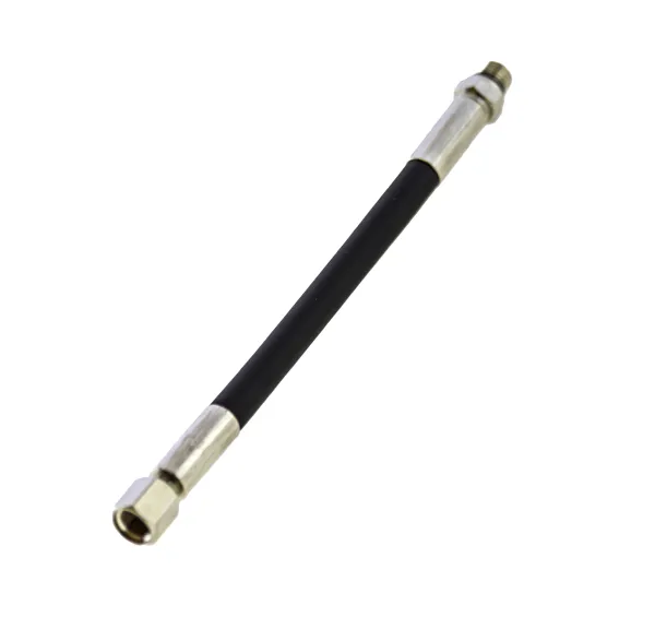 На другом конце шланга расположена резьбовая втулка с внутренней резьбой, которая удобно накручивается на резьбовую часть манометра. Это решение делает установку быстрой и эффективной, позволяя вам сосредоточиться на работе, а не на технических деталях подключения.