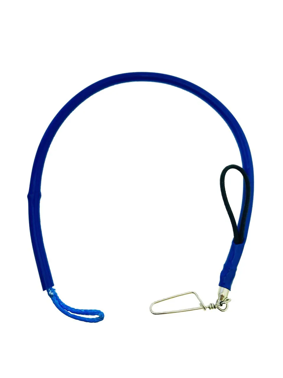 На конце установлен быстросъёмный карабин «Булавка» обеспечивает надёжную фиксацию оснастки. Длина амортизатора — 64 см, что удобно для большинства конфигураций подводной охоты и плавных траекторий при движении добычи.