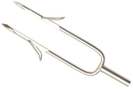 Изготовлен из высококачественной нержавеющей стали. Четырехгранная заточка. Прутья диаметром 6 мм – одно целое и обварены аргонной сваркой. Лепесток проволочный. Общая длина - 15 см., ширина 4,5 см. Под гарпуны со стандартной резьбой М7.