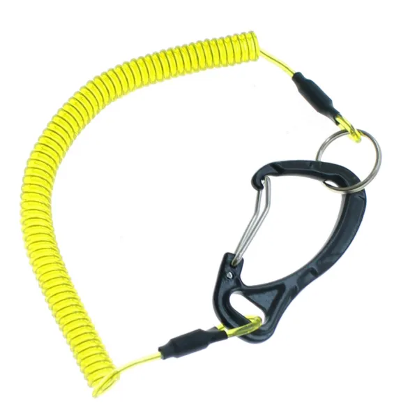Пружинный ретрактор с карабином и кольцом. Может использоваться для фиксации приборов, аксессуаров, фототехники, фонарей и т.д. Пружина растягивается на расстояние до 120 см.