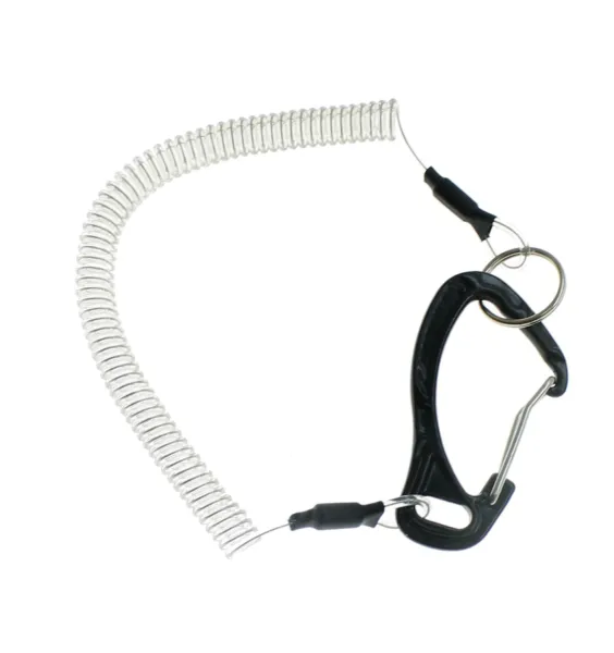 Пружинный ретрактор с карабином и кольцом. Может использоваться для фиксации приборов, аксессуаров, фототехники, фонарей и т.д. Пружина растягивается на расстояние до 120 см.
