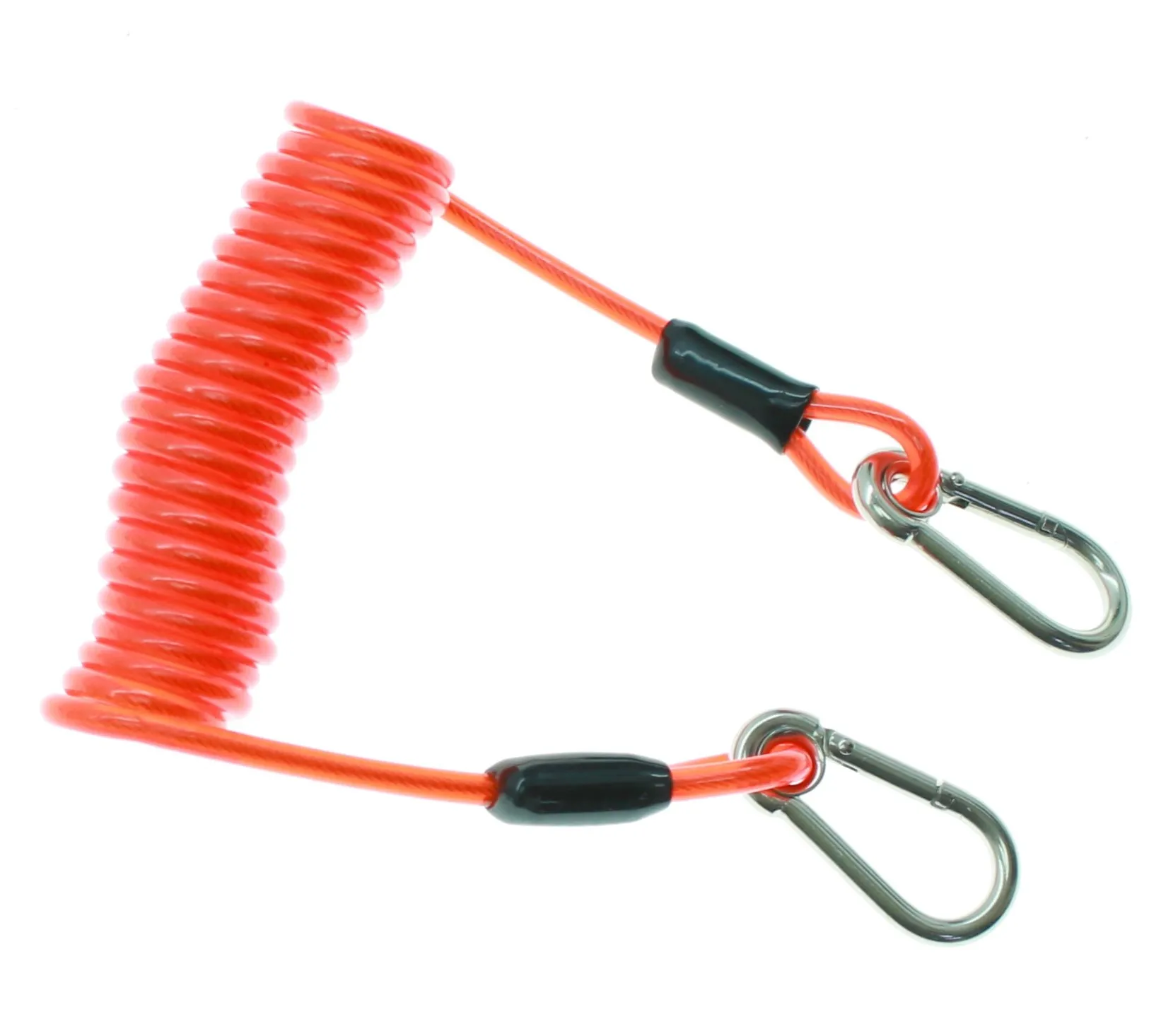 Пружинная спираль с стальными карабинами на концах. Спираль растягивается с 8 см до 150+ см. Может использоваться для фиксации приборов, аксессуаров, фототехники, фонарей и т.д. Карабины с автоматическим закрытием при заводке на линь или веревку, изготовлены из нержавеющей стали.