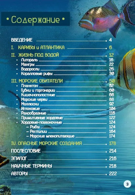 Райское карибское море раскинуло свои владения вдоль тропических берегов Южной и Центральной Америки, имея собственное украшение, – Большие и Малые Антильские острова. Это один из самых богатых коралловых регионов во всей Атлантике, средоточие коралловых рифов и их многочисленных обитателей. Вместе с авторами мы приходим на берег Карибского моря, под сень лохматых стройных пальм, надеваем маски, трубки, ласты, заходим и погружаемся в теплые воды тропиков. Нас тут же обступает невероятная подводная жизнь: вокруг нас плавают и мечутся мелкие существа планктона, раскрывают свои тайны мангровые леса и необыкновенные, фантастические коралловые рифы, населенные мириадами невероятных живых существ. Теперь мы увидим, узнаем и полюбим эту сказку наяву – богатейший и красивейший подводный мир Карибов.