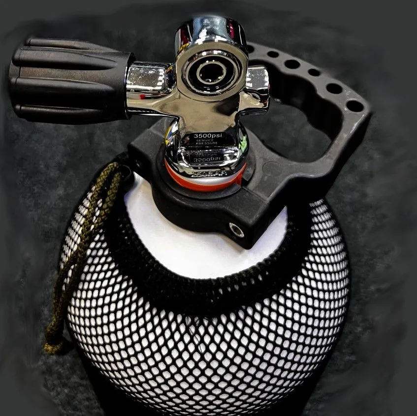 - Комплект: баллон + вентиль на 232 Bar + башмак + сетка + ручка