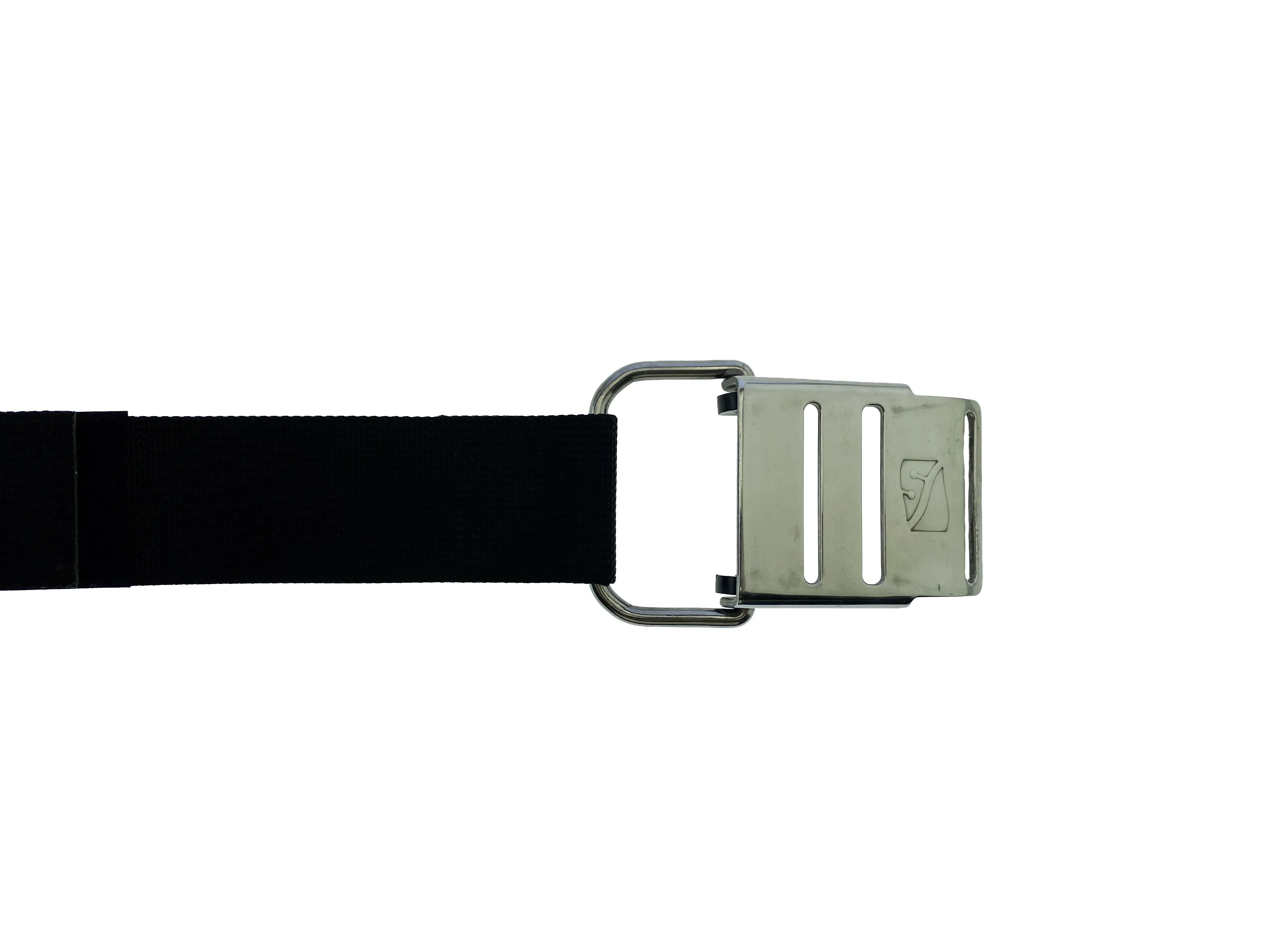 Пряжка ремня выполнена из нержавеющей стали, что не только делает ее легкой, но и придает значительную прочность. Нержавеющая сталь является коррозионностойким материалом, что обеспечивает долговечность и надежность изделия в условиях подводной среды.