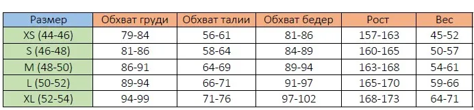 Размерная таблица женских гидрокостюмов Scorpena