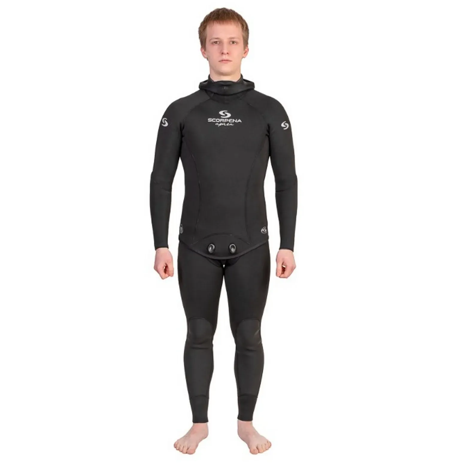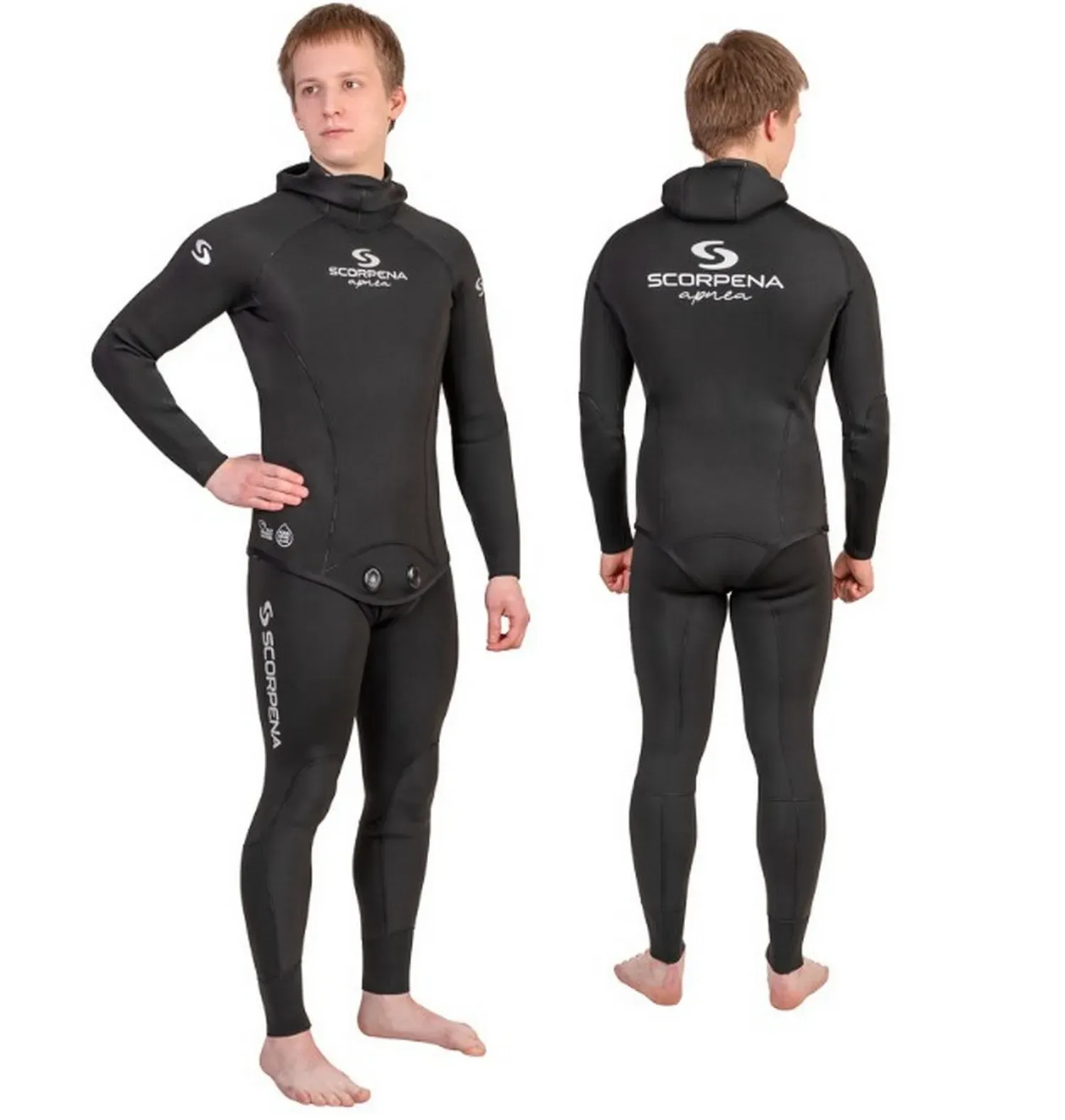 Гидрокостюм Scorpena Apnea F1 толщиной 5 мм. раздельного типа, состоящий из куртки со встроенным шлемом и высоких штанов. Для изготовления этих костюмов использован высококлассный неопрен с ультраэластичным внешним покрытием, а изнутри – открытая пора, что гарантирует высокую степень теплозащиты фридайвера и отличное прилегание костюма к телу.