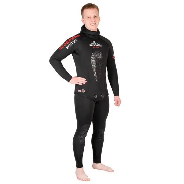 Гидрокостюм Scorpena Elite2 - создан для тех подводных охотников, кто хочет иметь очень мягкий и эластичный костюм с высокими теплозащитными качествами, но при этом не хочет переплачивать за камуфлированную расцветку. Гидрокостюм Scorpena Elite2 изготовлен из мягкого и эластичного неопрена фирмы SHEICO сам неопрен состоит из природного сырья. Scorpena Elite2 входит в экологическую - "зелёную" линейку брэнда Scorpena.