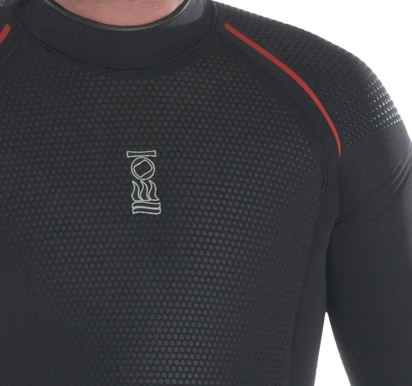 - Hexcore на груди и спине: Усиленная термоизоляция (+30% тепла) для защиты торса при длительном воздействии холодной воды.
