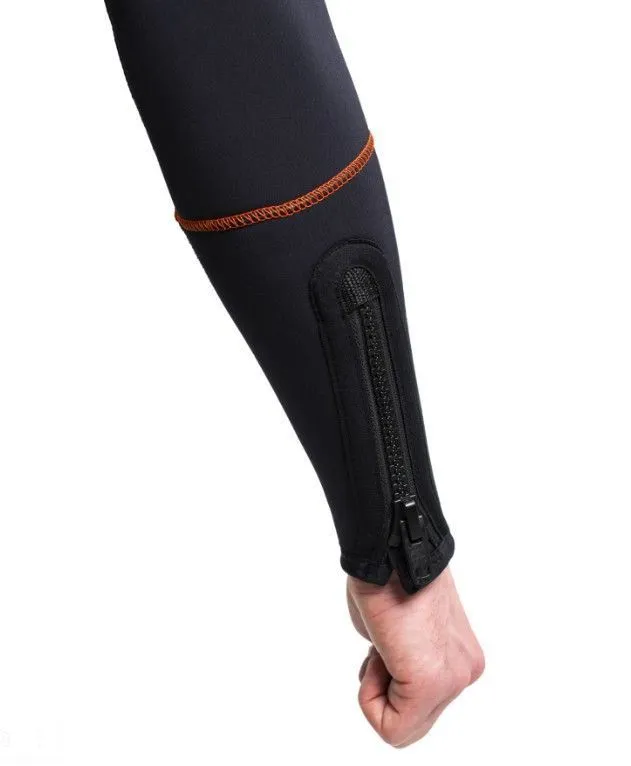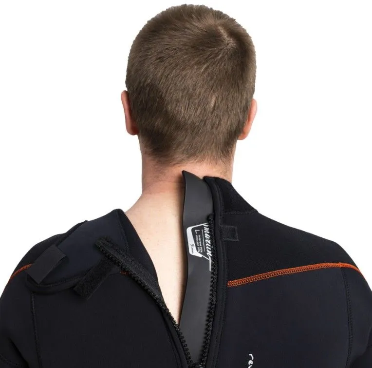 Молния, расположенная на спине, и тканевое покрытие внутри костюма позволяет легко надеть его на сухое тело, не опасаясь повреждения неопрена. Для удобства застегивания бегунок молнии оснащён нейлоновой лентой, а липучка фиксатор, расположенная в верхней части молнии исключит возможность случайного расстегивания. С внутренней стороны, по всей длине молнии имеется защитная планка из неопрена с гладким покрытием Glide skin, обеспечивающая максимальную герметичность молнии. Для удобства надевания молния имеется на запястьях и щиколотках. Пластиковые молнии японской фирмы YKK не подвергаются коррозии в морской воде и прослужат максимально длительное время.