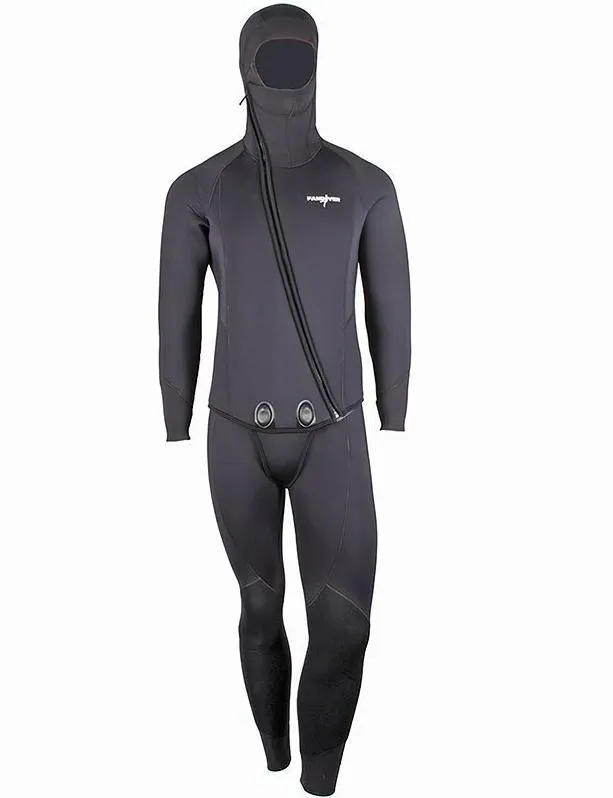Молния продолжается до уровня уха — это улучшает лицевую обтюрацию и даёт свободный поворот головы без натяжения. Прочная молния снабжена внутренней планкой с гладким покрытием, что значительно уменьшает поток воды через застёжку. По запястьям, лодыжкам и лицу установлены обтюраторы из 4 мм неопрена «гладкая кожа» с повышенной прочностью на разрыв, они эффективно удерживают тепло и защищают от проникновения воды. Встроенный шлем с улучшенной лицевой обтюрацией и клапаном для удаления воздуха обеспечивает удобную подгонку головы и контроль плавучести воздушной прослойки.