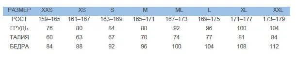 Размерная таблица
