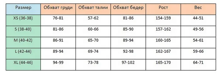 Размер ?Не уверены в размере? Ниже в описании к товару есть размерная таблица или просто свяжитесь с нами удобным для вас способом. Вы также можете оформить заказ и мы обязательно уточним по телефону все детали и внесем корректировки в случае необходимости. —XS