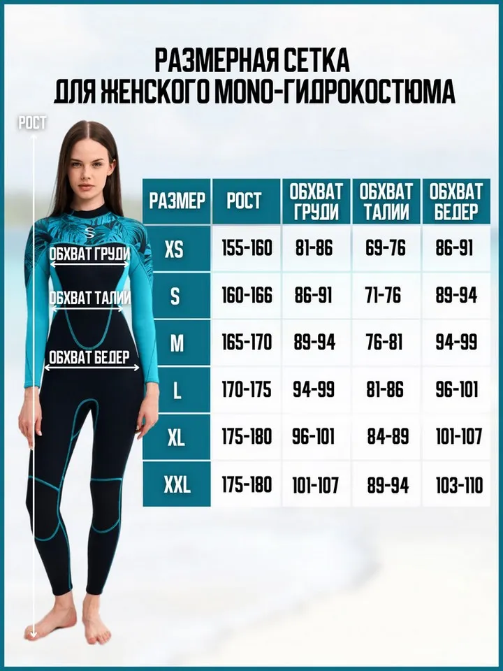 Размерная таблица женских гидрокостюмов Slinx