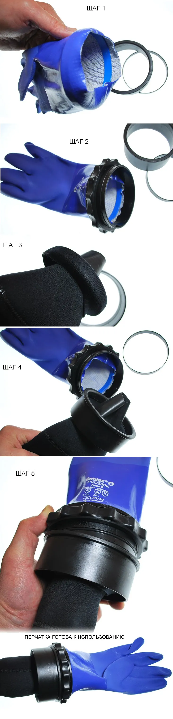 Комплект Quick Clamp (платформа крепления для Quick Glove) зажимается кольцами на латексном манжете, на неопреновом манжете закрепить эту систему невозможно.