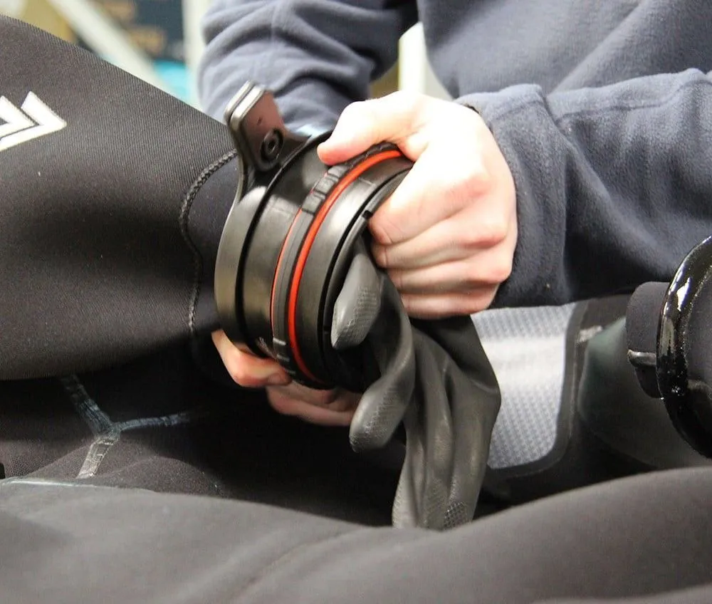 Инновационная система колец для сухих перчаток пользуется доверием дайверов-любителей, технических и коммерческих дайверов по всему миру и используется в самых разных условиях погружений, включая загрязненную воду. Эта последняя версия отличается более тонкой конструкцией кольца, что делает ее легче и менее громоздкой — она на целых 33% компактнее предыдущих версий!
