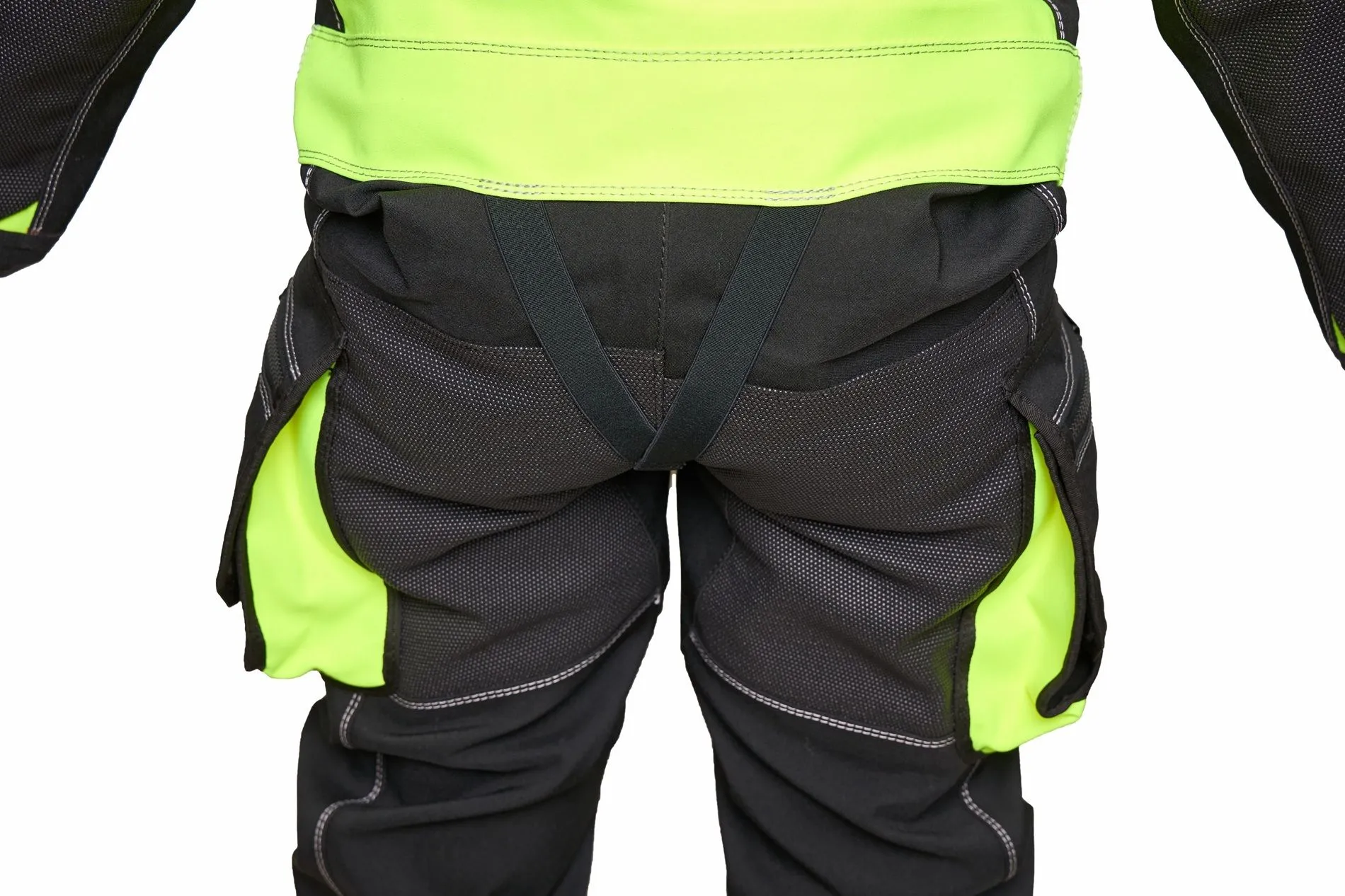 Также костюм имеет телескопический торс с брасовым ремнем, широкие подтяжки, позволяющие подогнать костюм по фигуре более точно и в то же время иметь свободу движения. Карманы: 2 боковых на бедрах, внутри бандажные резинки, D-кольца, карманы на клапане с молнией и петлями, клапан кармана имеет дополнительное отделение на молнии с еще двумя эластичными петлями.