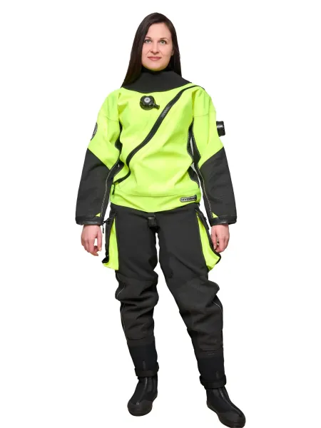 Сухой гидрокостюм женский Froglady Hydra изготовленный из прочного триламината. Плотность материала 460 г/м2. Передняя диагональная молния и телескопический торс обеспечивают легкое одевание и снятие, и значительно повышает возможность свободного движения при наклонах и изгибах. Швы проклеены лентой и аквашуром.