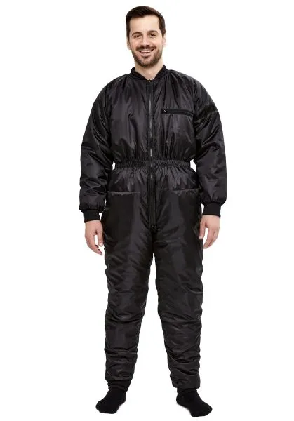 Комбинезон изготовлен с применением утеплителя Thinsulate® (Тинсулейт) производства фирмы 3М, Р150 плотностью 150 гм². Рекомендован к использованию при температуре до -17°С. Недорогое и очень практичное решение для использования при погружения в холодной воде, при подледных погружениях. Свободный крой не стесняет движений, а размерная линейка предполагает использование утеплителя подводникам с любой комплекцией.