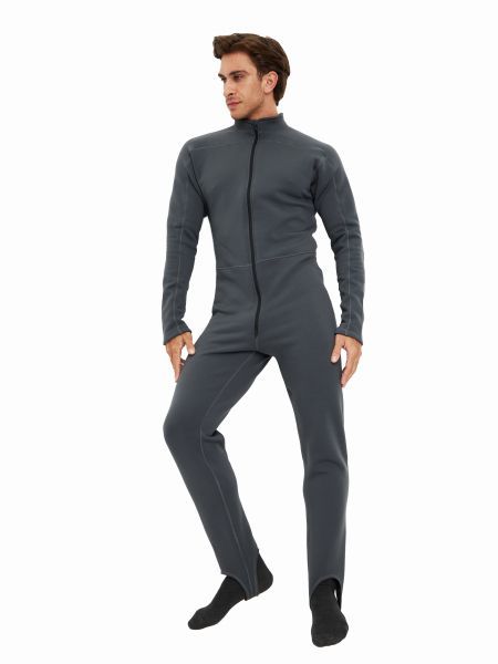 Утеплитель также отличается высоким уровнем прочности, что достигается за счет дополнительного покрытия с высокой стойкостью на разрыв и износ. Воротник-стойка обеспечивает дополнительное тепло и защиту шеи, а наличие петель для большого пальца в рукавах и петель для ступней в штанинах позволяет зафиксировать материал на месте, тем самым устраняя его смещение, что особенно удобно при надевании гидрокостюма.