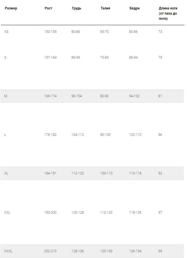 - Размеры брюк и кофты: XS, S, M, L, XL, XXL, XXXL