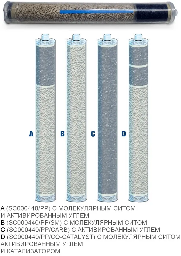 Сменный картридж для компрессоров моделей Coltri Sub MCH 8, MCH 11, MCH 13, MCH 16, MCH 18. Наполнитель молекулярное сито и активированный уголь.
