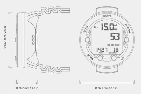 - Возможность вывода на ПК/Мас подробных графических журналов и данных погружений с помощью программного обеспечения Suunto DM5 (для компьютеров D серии (кабель в комплект поставки не входит и приобретается отдельно при необходимости)