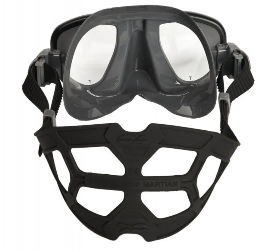 Мягкий обтюратор анатомической формы обеспечивает комфортную и универсальную посадку на разных типах лица и надежное прилегание без лишнего давления. Оптимальный подмасочный объем облегчает продувку и компенсацию, что делает маску удобной для продолжительного пребывания в воде. Прочный корпус защищает линзы от ударных нагрузок, а продуманная геометрия рамки расширяет поле зрения.