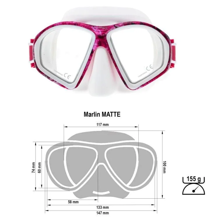 Эта маска превосходно подходит не только для профессиональных охотников, но и для новичков. Идеально сочетается в комплекте с трубкой Marlin Matte Black.