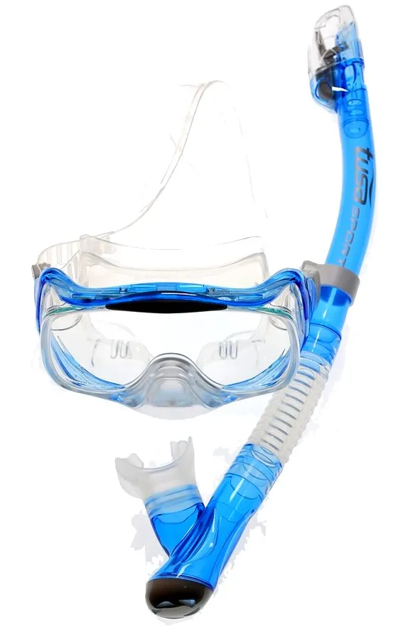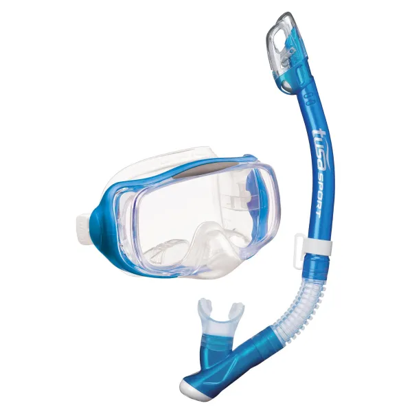 Комплект для сноркелинга с маской Tusa UM-33 с пожалуй самой широкой панорамной линзой и сухой трубкой USP-250, оснащенной как и нижним так и верхним "сухим" клапаном.