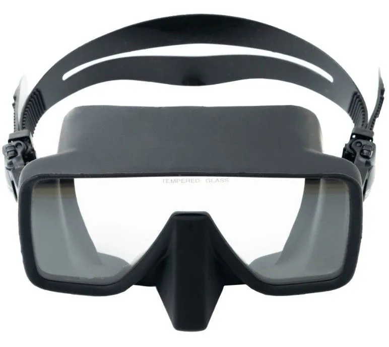 Большое моностекло и небольшой объем подмасочного пространства обеспечивают широкий угол обзора. Безрамочная технология (frameless) способствует снижению веса и объема маски.