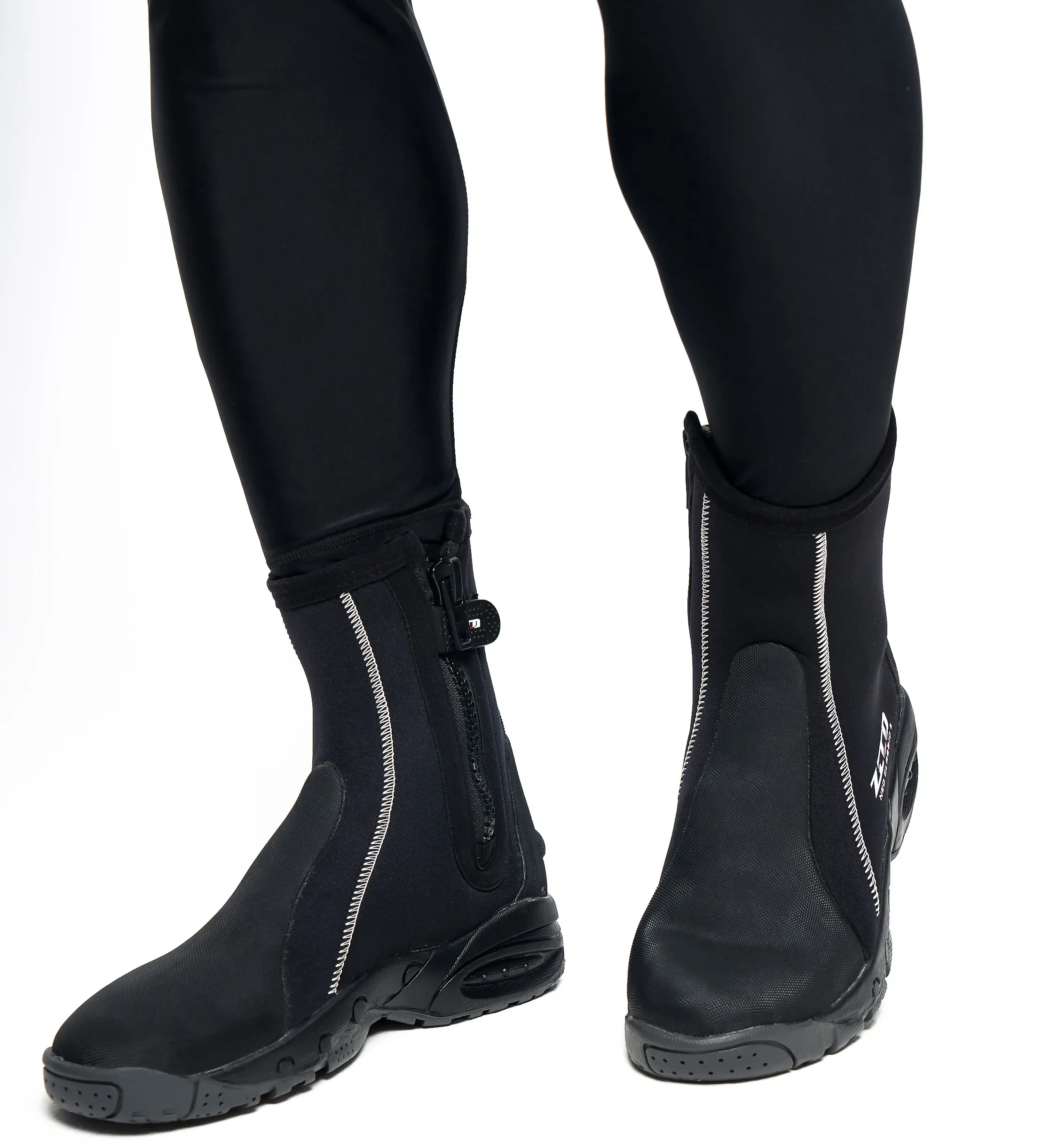 Боты оснащены толстой нескользящей подошвой, обеспечивающей защиту от острых камней. Сзади на этих ботах предусмотрен стопор ремешка ласт, что добавляет дополнительную сохранность бот. Молния YKK, не только прочная, но и оборудована фиксатором, который предотвращает произвольное расстегивание. Это решение значительно увеличивает долговечность и надежность изделия, предотвращая любые неприятные ситуации во время занятий водными видами спорта.