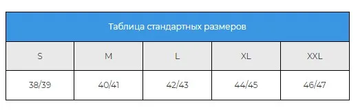 - Размеры: 38-39; 40-41; 42-43; 44-45; 46-47.