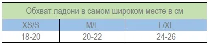 Благодаря этому перчатки особо комфортно сидят на руке, и выпускаются всего в трех размерах - XS/S на женскую или подростковую руку, M/L на руку средних размеров, XL/XXL на руку взрослого мужчины.