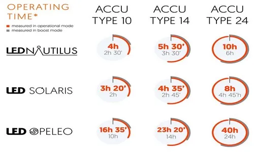 В Ammonite System Accu Type 10 используется литий-ионный (Li-Ion) аккумулятор, полностью лишенный так называемого эффекта "ленивой батареи" и защищенный от перенапряжения.