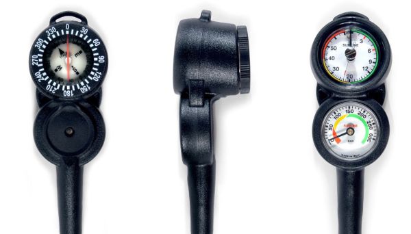 Компас в составе консоли обеспечивает стабильную навигацию под водой. Конструкция позволяет снимать точные показания при наклоне до 30 градусов, сохраняя ориентирование даже при неудобном положении тела или ограниченной видимости.