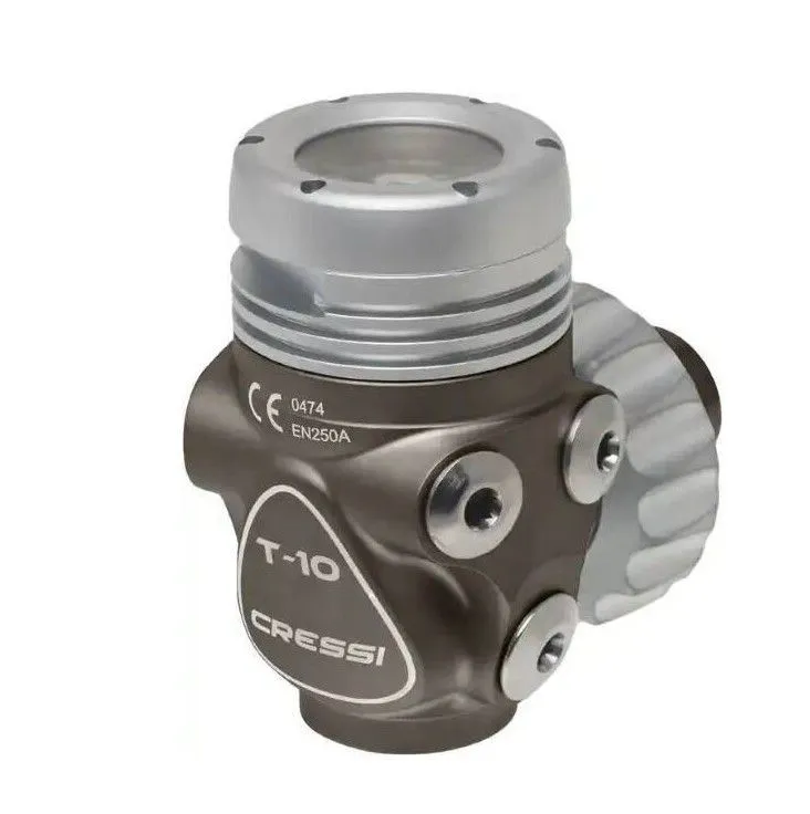 Комплект регулятора Cressi Master T10-SC Din первой и второй ступени. Камера 1-й ступени t10-seal герметична для окружающей среды, что защищает ее от обледенения в холодной воде и от загрязнения твердыми частицами в условиях ила.