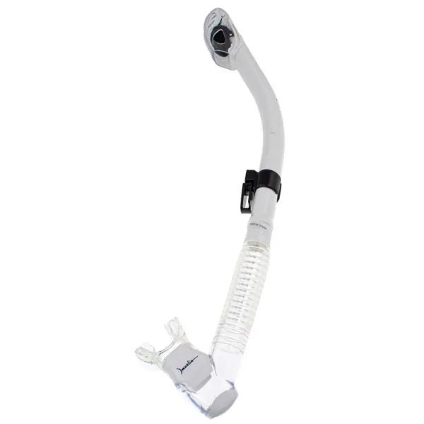 Верхний «сухой» клапан при нырянии, прыжке в волну клапан мгновенно герметично закрывается под действием давления воды, полностью блокируя ее путь внутрь трубки. Это ключевое отличие от обычных моделей. Сухой клапан сохраняет воздушную подушку внутри, делая возвращение на поверхность комфортным без усилий.