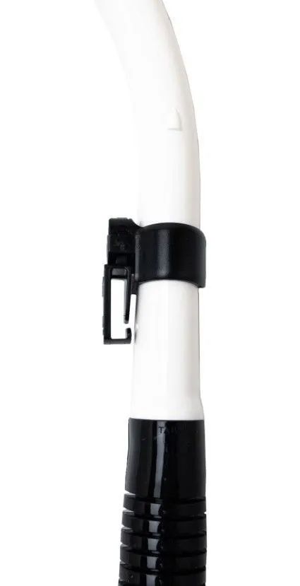 Быстросъемное двухкомпонентное крепление к маске позволяет за считанные секунды закрепить трубку на ремешке маски. Двухкомпонентный зажим регулируется по высоте и углу наклона, идеально подстраиваясь под анатомию вашего лица и головы. При необходимости трубку можно быстро отсоединить одним движением — никаких инструментов, никаких усилий.