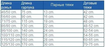 Таблица для подбора тяжей на ружье. Просьба учесть, что в таблице приведены приблизительные данные.