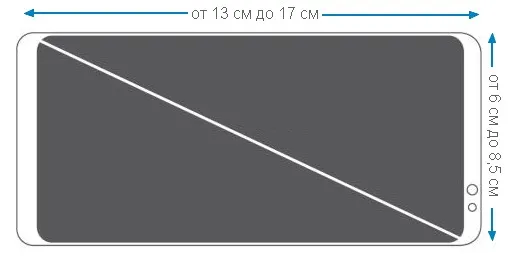 Подходит для смартфонов любых производителей с шириной корпуса от 6 до 8,5 см., и с высотой корпуса от 13 до 17 см.